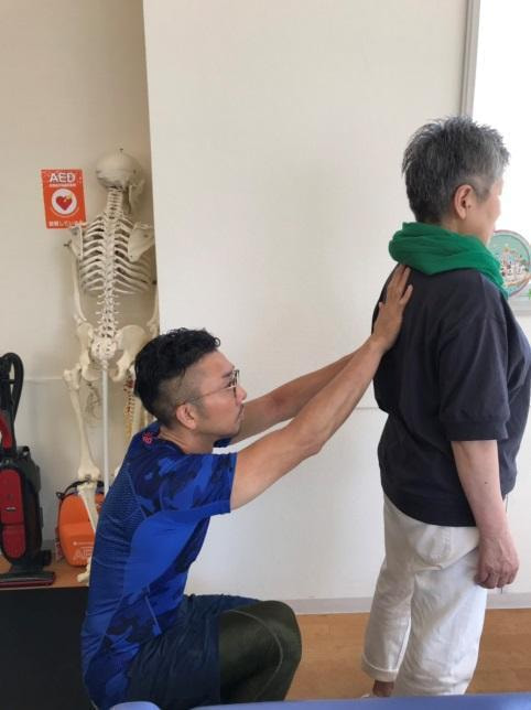 胸椎の屈曲変位による猫背に対して伸展方向に適切な押圧を加え、改善を図っていきます。